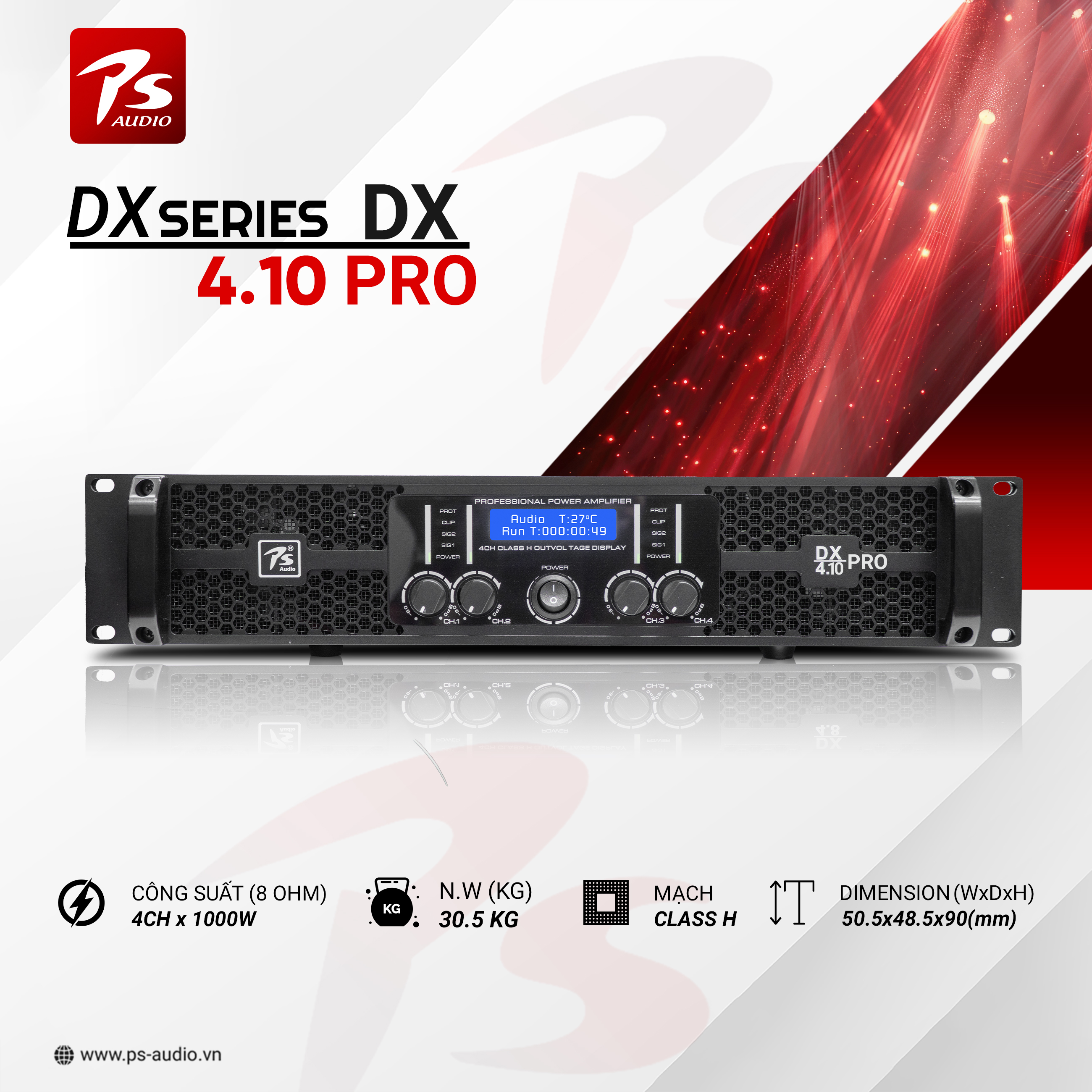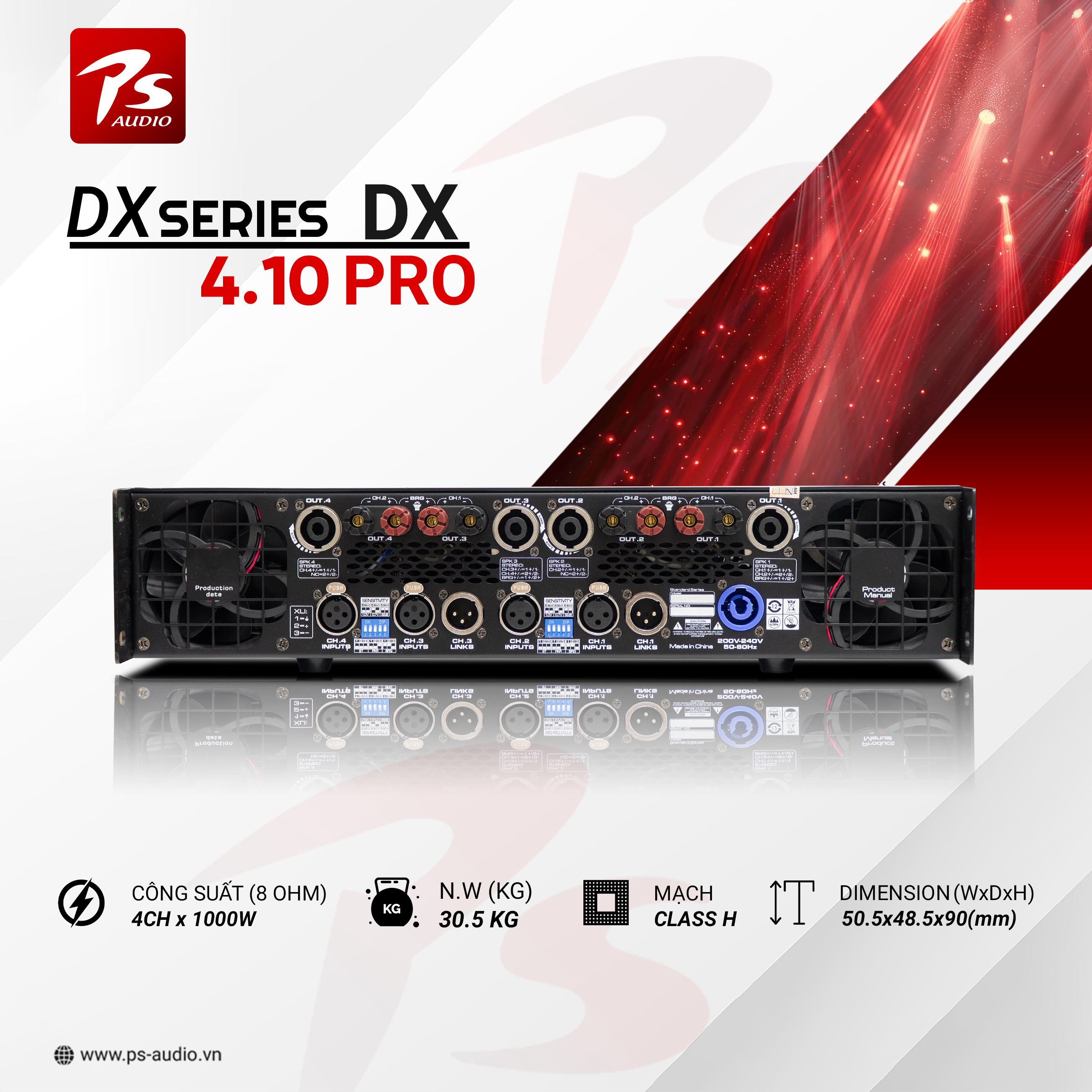 _ Công suất 8OHM: 850w , 4 OHM : 1250w, Bridge 8 OHM : 2x2400 w