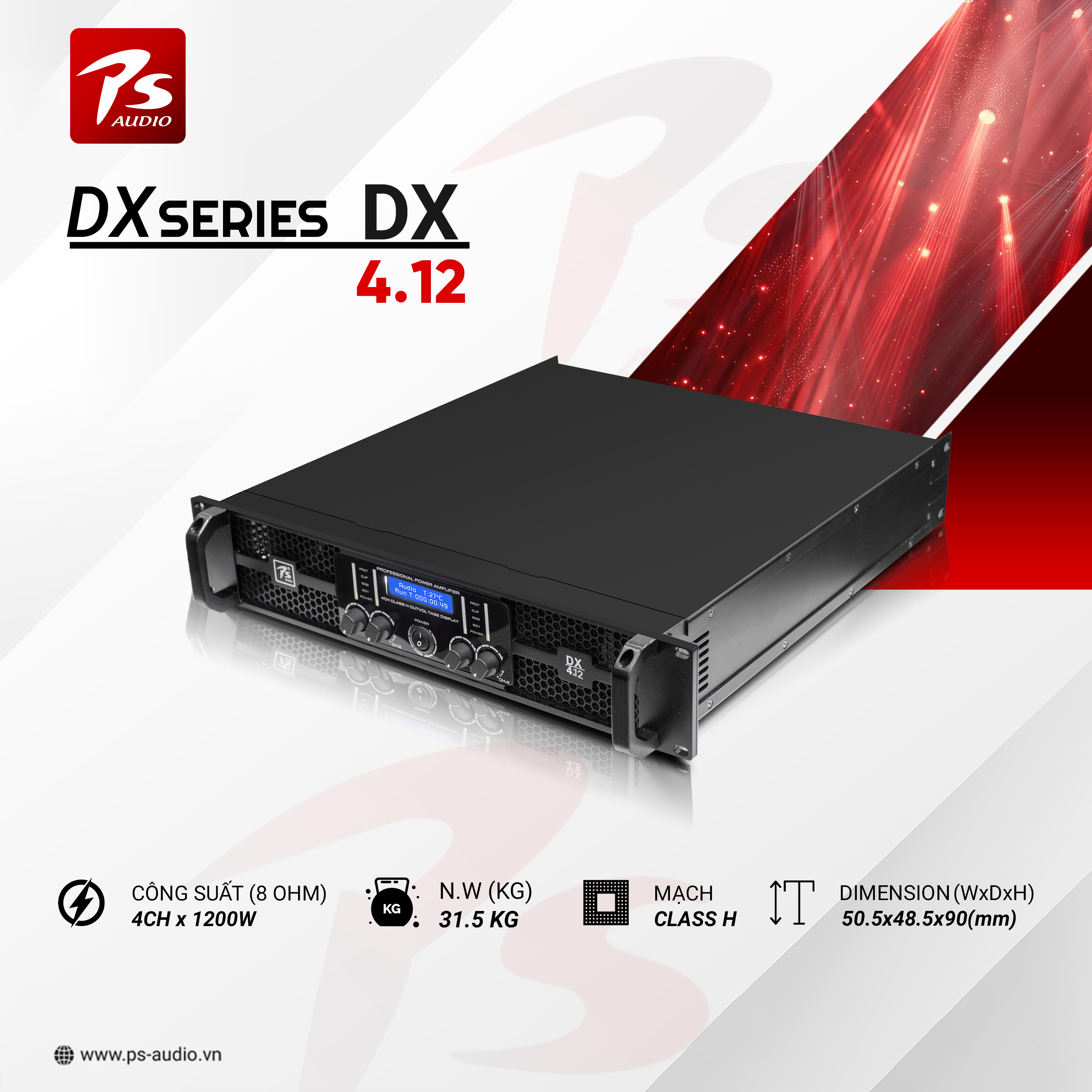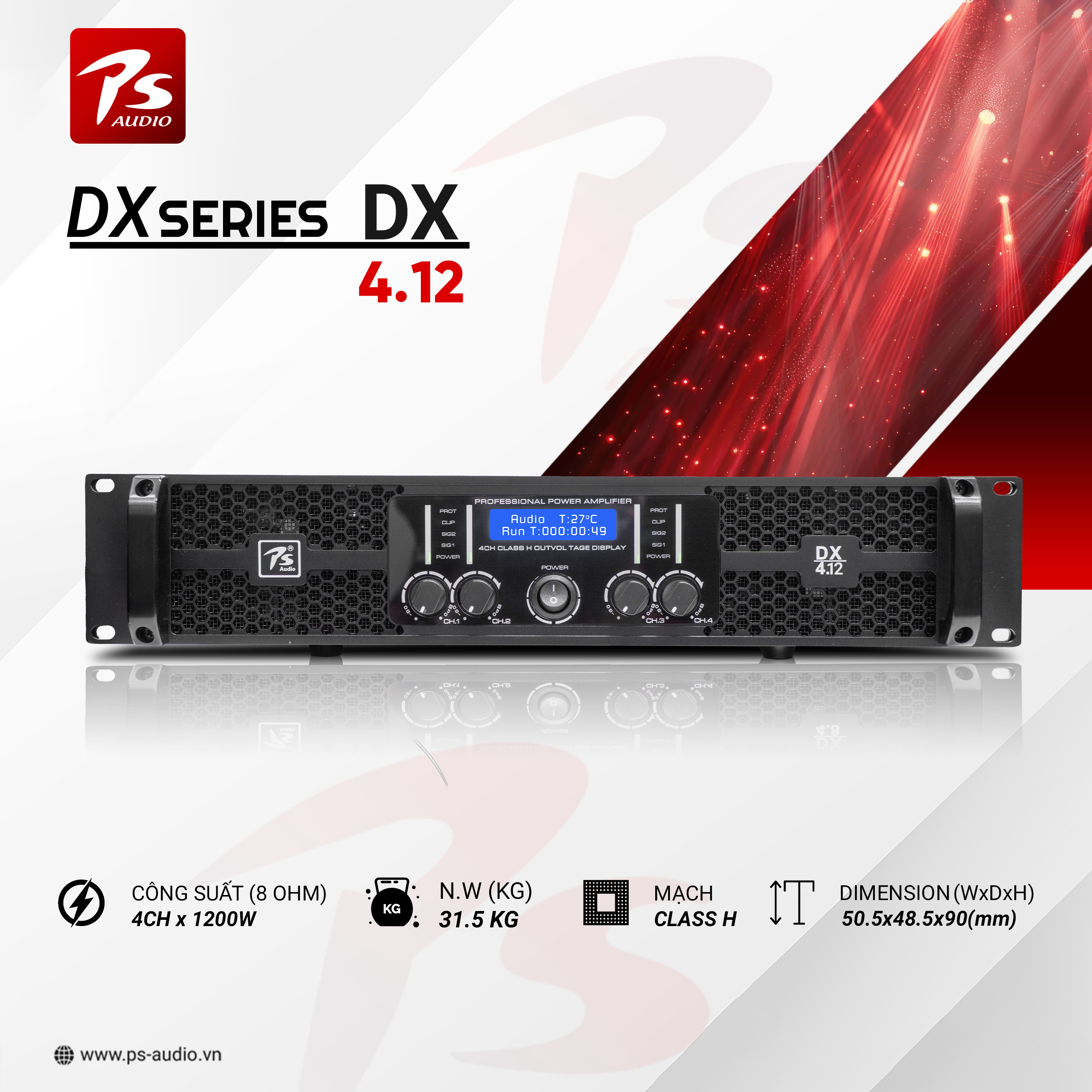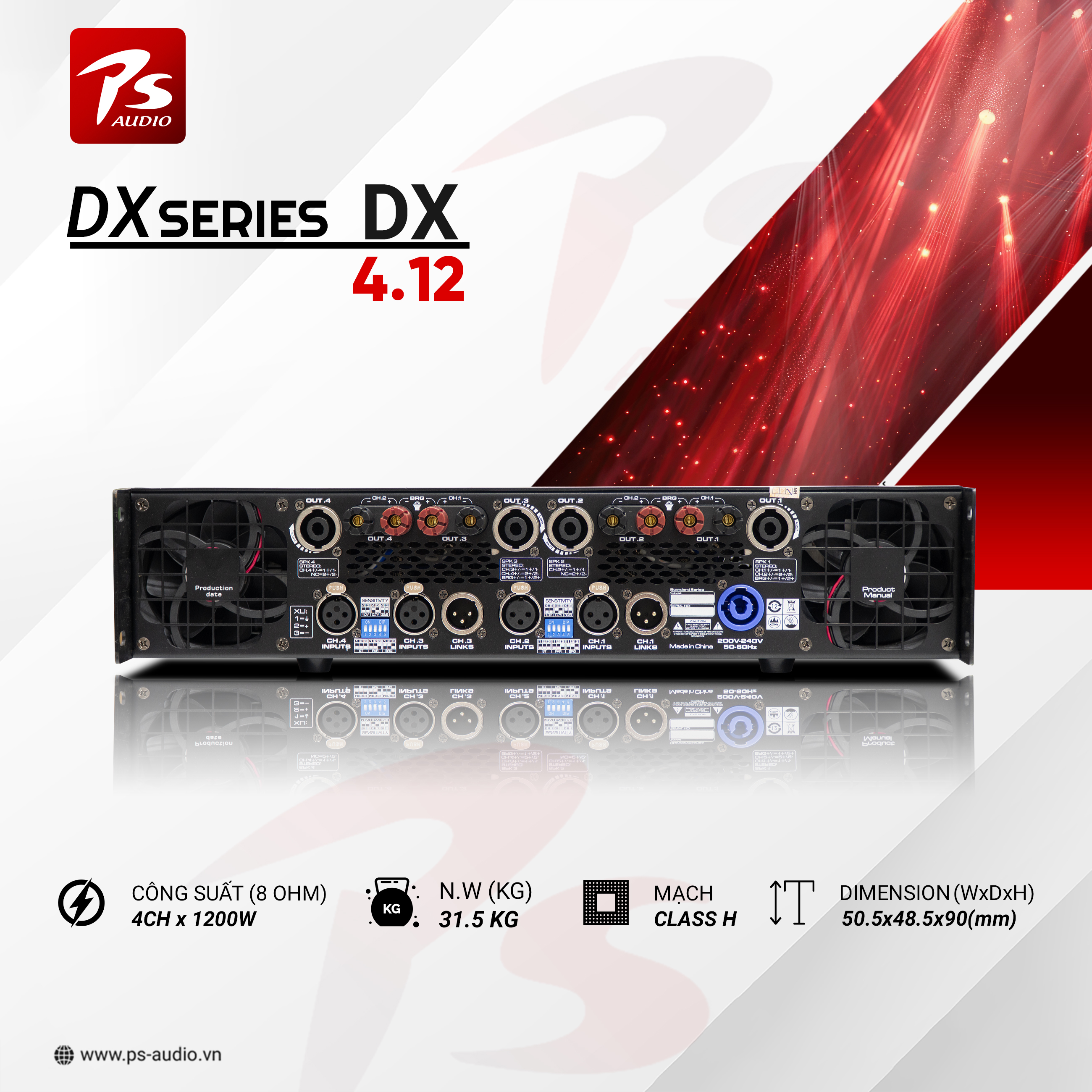 _ Công suất 8OHM: 1050w , 4 OHM : 1550w, Bridge 8 OHM : 2x3000w
